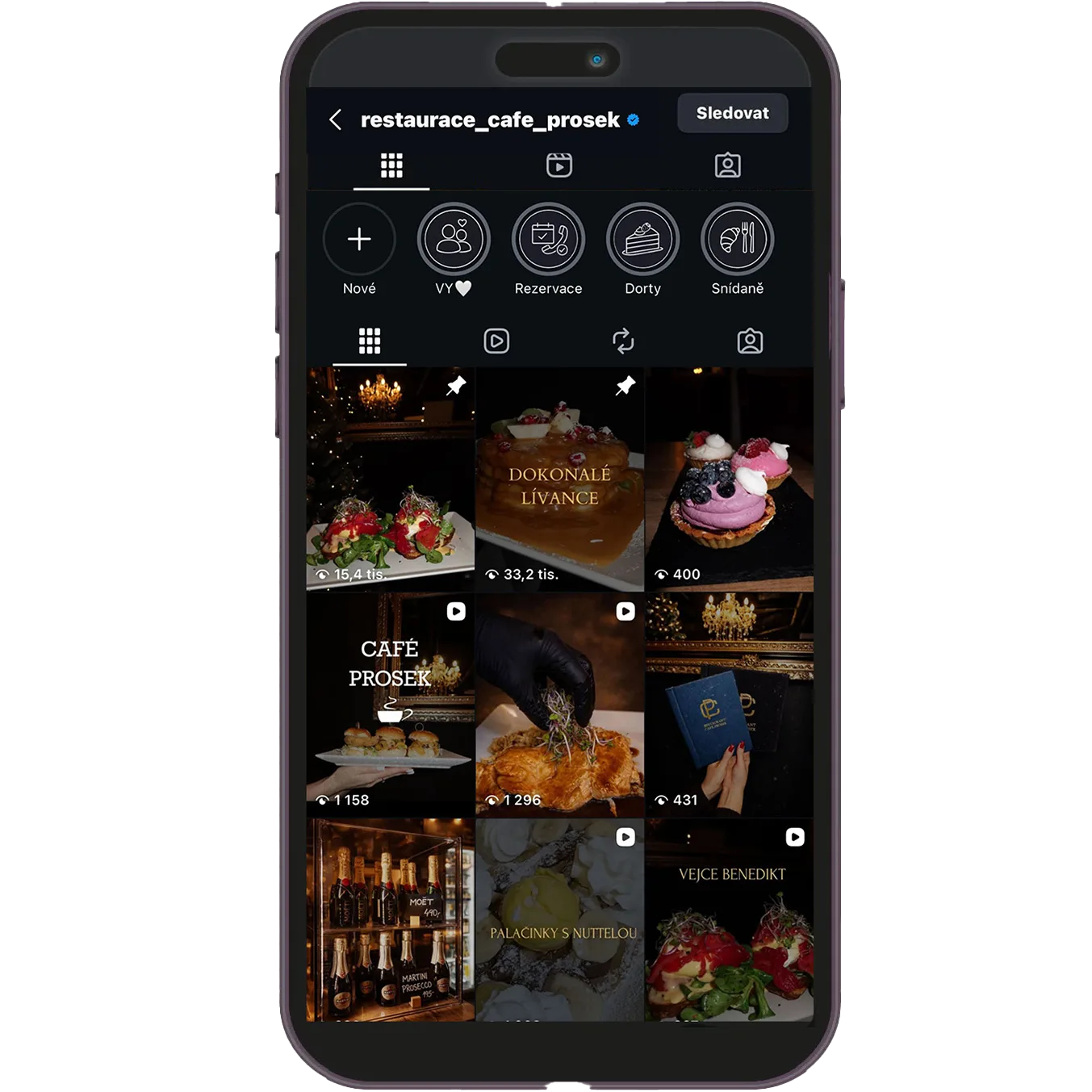 Sjednocená vizuální identita (barvy, fonty, styl fotek a Reels) dělá obrovský rozdíl: lidé si Café Prosek rychleji zapamatují, profil působí důvěryhodněji a každé další zobrazení posiluje chuť přijít osobně.